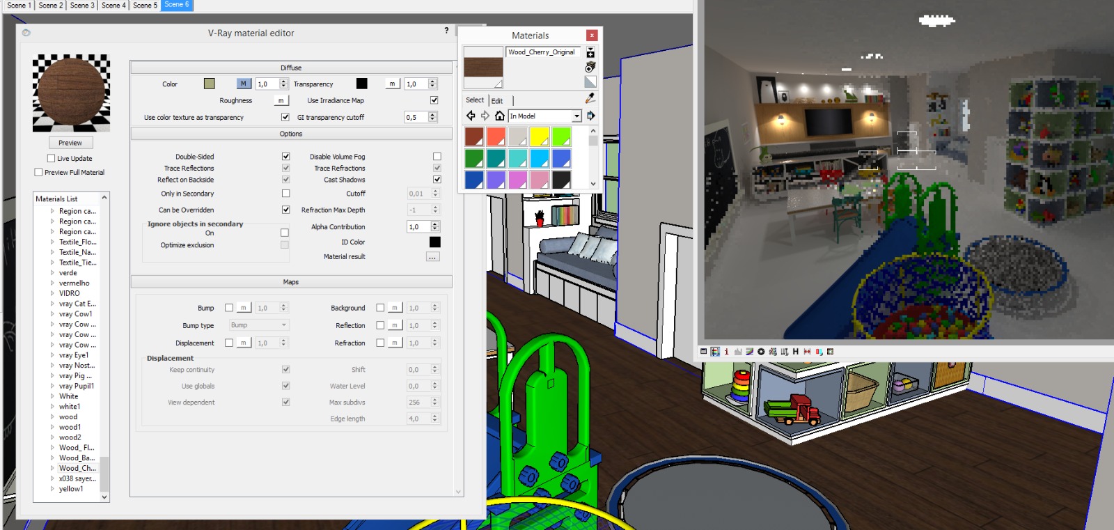 para piorar a textura aparece no sketch e quando manda visualizar o material no vray ela aparece tambem… mas no render não aparece nada (nem cor, nem brilho nem nada…)… já troquei por outra textura para ver se funciona e nada feito… já baixei textura pronta e adivinha? nada também… acabou a minha criatividade… alguem pode me ajudar???